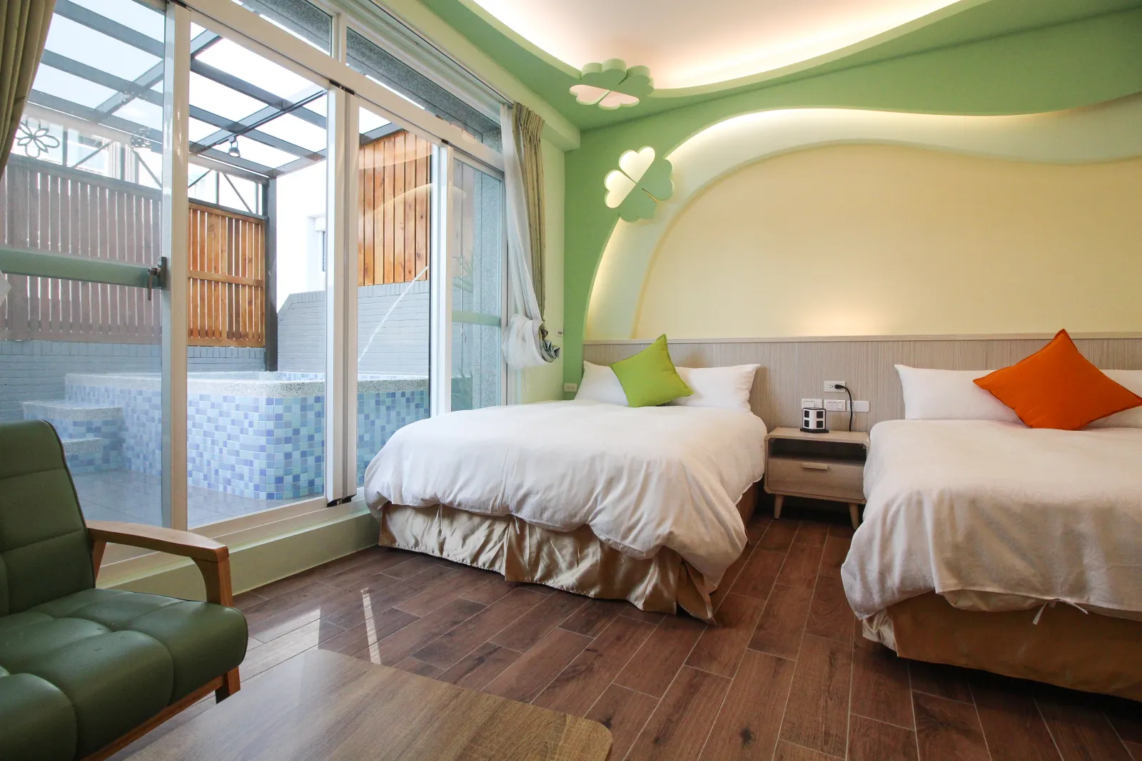 2F 201幸運草四人房.陽台戲水池.標準雙人床x2